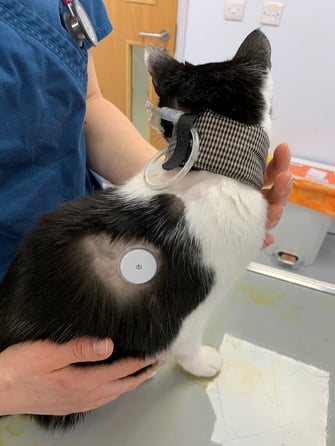 Les capteurs sont conçus pour la peau humaine et, chez l’homme, différents pansements et bandes permettent de les maintenir en place. Chez les chats, cependant, la peau est fine et les animaux très mobiles, ce qui peut facilement provoquer le délogement du petit cathéter, notamment chez les patients affaiblis. Dans les jours qui suivent la pose, la repousse des poils peut également décoller l’adhésif. Les propriétaires doivent être informés qu’un détachement prématuré du capteur peut survenir et que les coûts liés à cette complication et au remplacement du capteur doivent être pris en compte.
