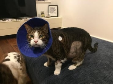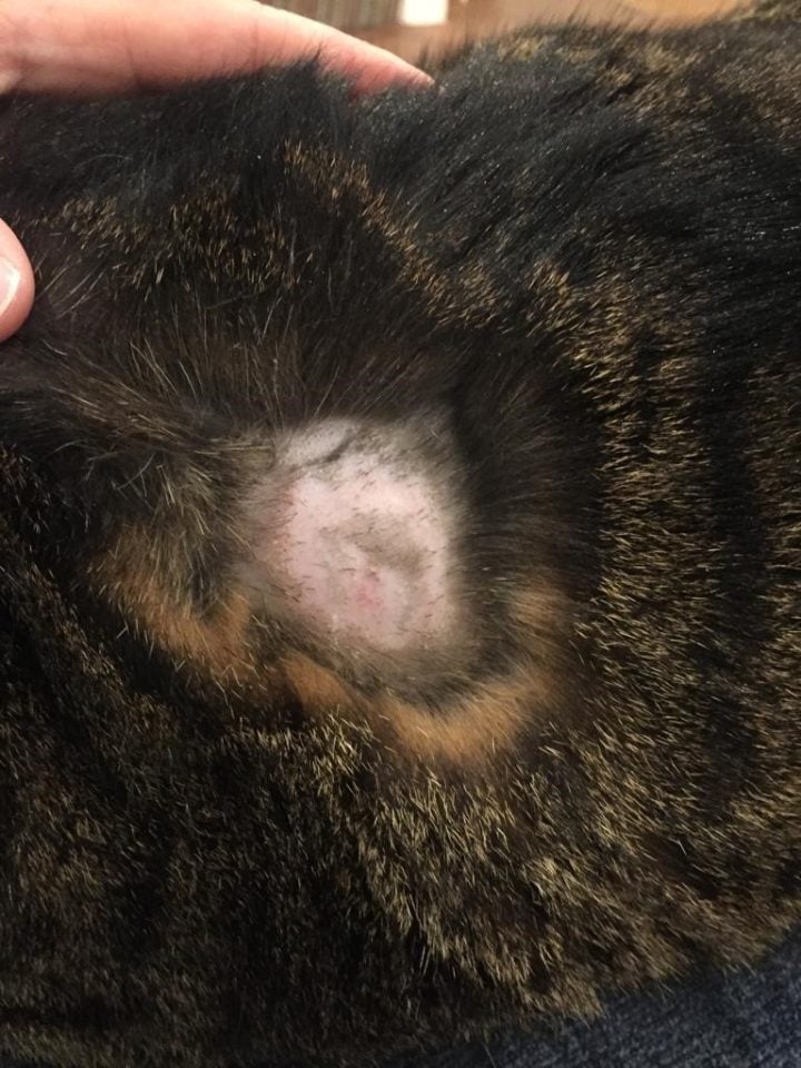 Les poils peuvent être lents à repousser dans la zone où le capteur a été placé (Figure 7), et chez les chats, la zone peut repousser avec des poils d'une couleur différente.