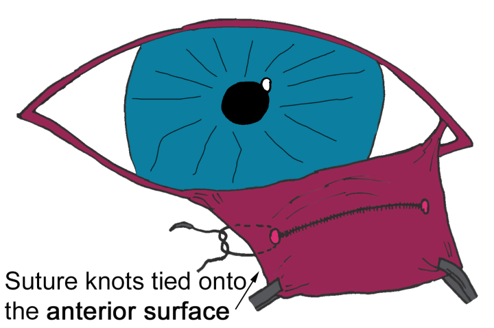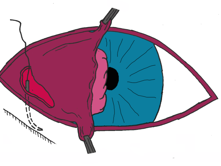 - Step 4: The suture is then directed down through the third eyelid and out of the original incision where the suture ends are tied and the gland is anchored to the periosteum of the orbital rim (Figure 3C)