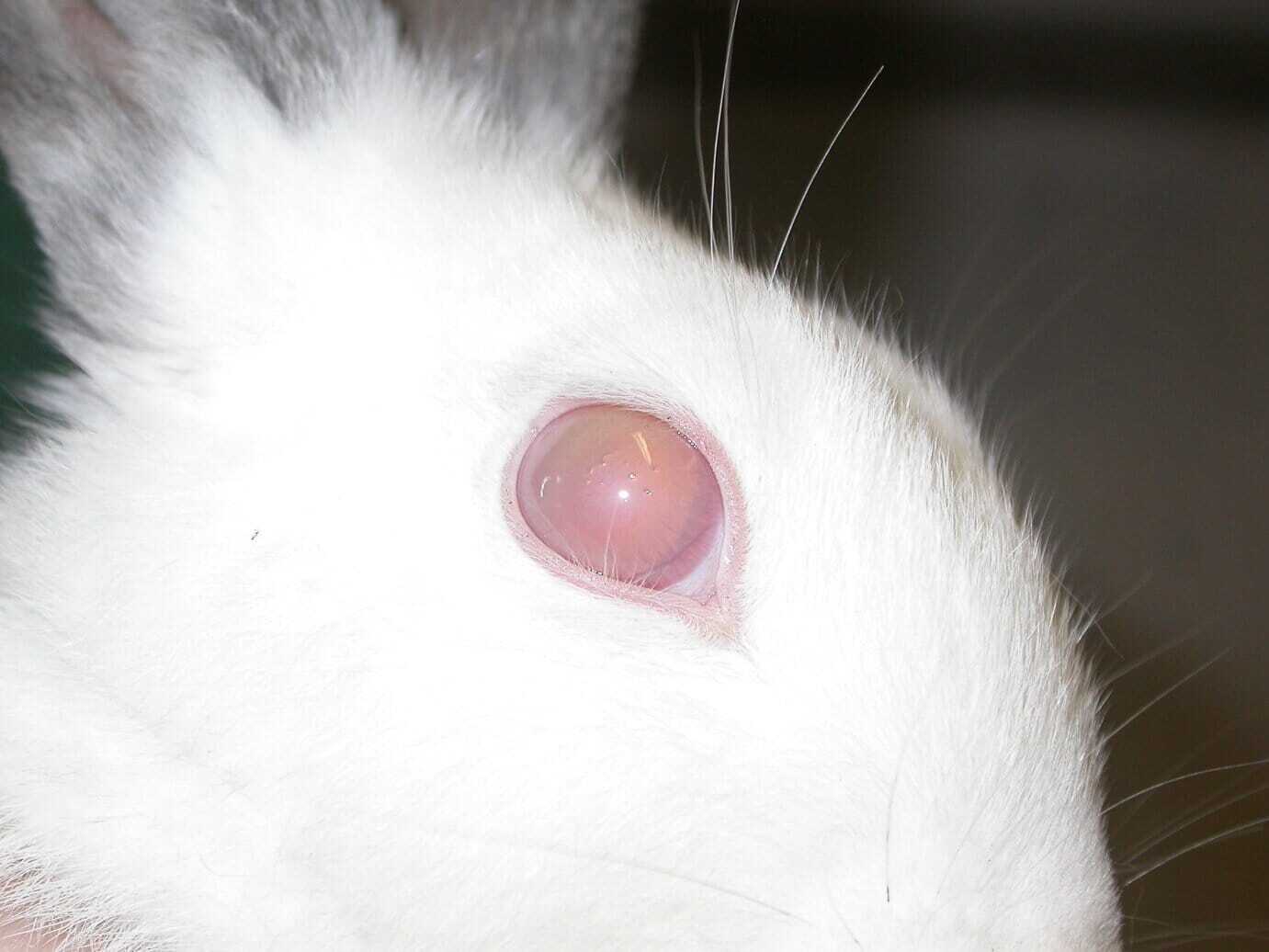 So maybe a rabbit with glaucoma or a guinea pig with keratitis is actually in substantial discomfort but just not showing it (Figure 6). And who knows, that may be the case with other pets such as dogs and cats. They may not be blinking and squinting, they may not be rubbing their eyes continually, but if a lesion is present that would stimulate pain receptors in us or a dog or cat, perhaps we should be putting in place the precautionary principle and giving them pain relief even though we have not got hard and fast evidence that they need it. Their welfare must be our top concern.