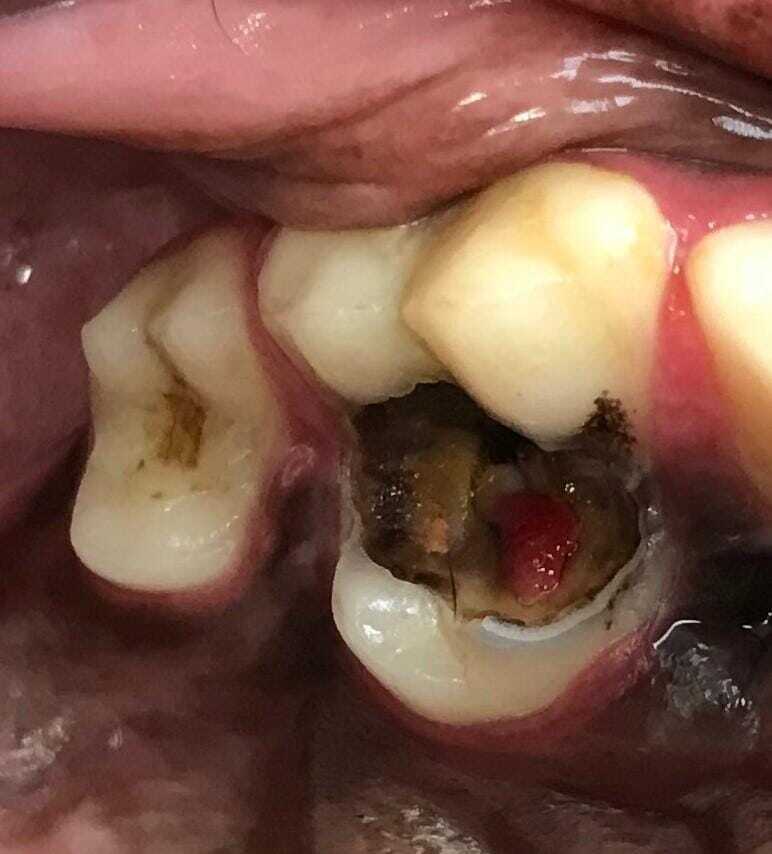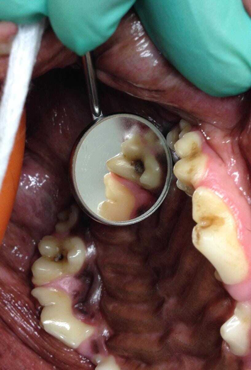An advanced caries lesion goes along with substantial loss of tooth structure, and extraction is the only treatment option (Figure 4).