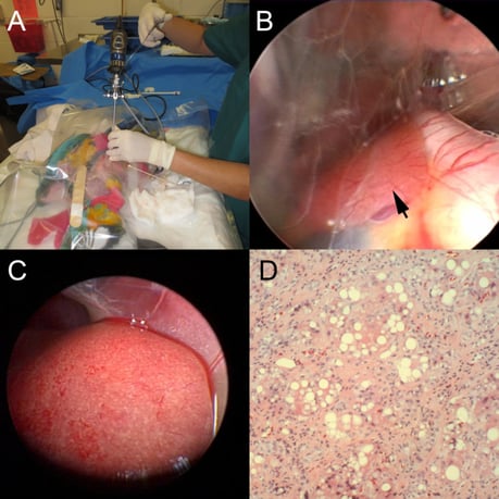 There are also multiple examples in domestic and human literature to indicate the superior diagnostic value of biopsy histopathology over ultrasound-guided aspirate cytology (Roth, 2001; Falcone et al., 1993; Rawlings et al., 2003). Likewise, there are many examples of how endoscopy is less traumatic and less painful than traditional surgical approaches. In human medicine, faster recoveries, reduced hospital stays and decreased pain scores have been attributed to endoscopic procedures (Rau and Hunerbein, 2005; Parker et al., 2001; Yu et al., 1997).