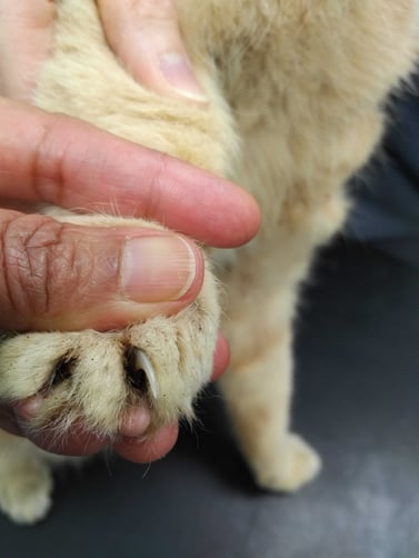 The clinical signs are variable and may well depend on the underlying condition, and there is no particular distribution pattern. Not all cases of Malassezia infections are pruritic in the initial stages, but can become so with time. The lesions include dry ( Figure 1) or greasy scale, erythema, follicular casts, brown exudate ( Figure 2), alopecia and hyperpigmentation. Cats with Malassezia otitis have brown to black ceruminous exudate in the ear canals ( Figure 3), stenosis, erythema and self-inflicted lesions on the preauricular skin. Accumulation of brown to black exudate on the claw folds or in the claws are seen in some cases ( Figure 4) as well as on the feet ( Figure 5). Some of these cats are presented with a history of claw or feet biting and licking. Predisposed breeds such as the Devon Rex present with seborrhoeic dermatitis.