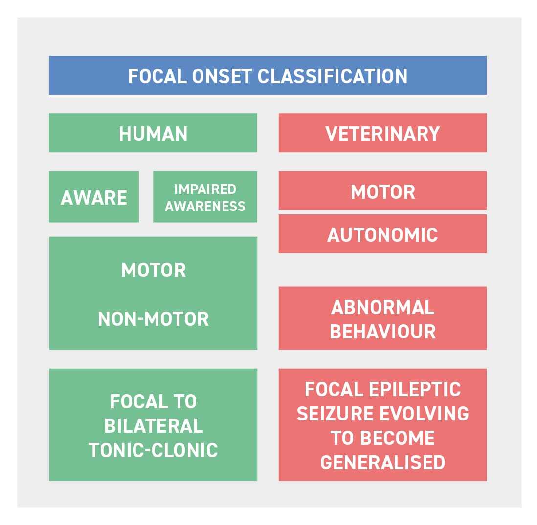 Focal seizures have been defined as abnormal electrical activity arising in a localised group of neurons or networks within one hemisphere (Berendt et al., 2015). They may also progress to generalised seizures in some cases. Clinical signs depend on the brain areas involved and can be highly variable. Similarities have been found with regards to the distribution and semiology of focal seizures between dogs and humans (Berendt et al., 2004). In both, focal seizures have been associated with motor, autonomic and behavioural signs.