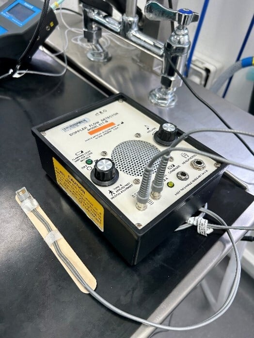Once settled in the ward, it is ideal to prepare the patient with an intravenous catheter. In the author’s experience, placing the catheter in the marginal ear vein works very well (Figure 1), but using the cephalic or saphenous vein can also be attempted. An important note: do not place the catheter in the auricular artery as this can lead to thrombosis and necrosis of the area (Girling, 2013) (Figure 2).