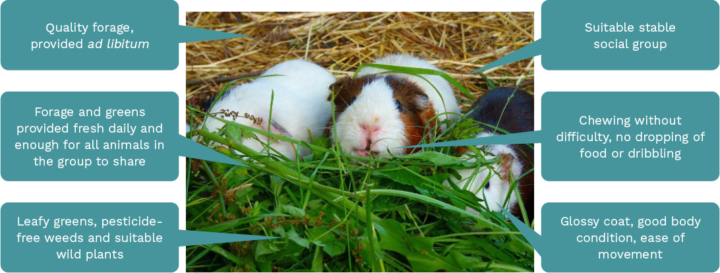 Hypovitaminosis C can be treated if caught early. Malocclusion will require future dental work to continually correct as the animal ages, and patients may require long-term analgesia for arthritis and afflicted joints. Veterinary surgeons should educate owners to spot signs of gut stasis and bloating, as these can be life-threatening and require urgent veterinary care. Good quality roughage will ensure that a guinea pig’s digestive tract continues to function normally and maintains its constant motility.