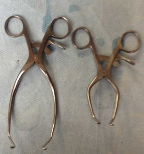 As discussed previously, fracture repair can require quite a lot of instrumentation and often it is a good idea to have instrumentation provided as “kits” rather than having to open lots of individual instruments. Some companies provide these kits ready-made. For example, a kit for placing a 2.7 or a 3.5 plate would contain all the drill bits possibly required as well as a depth gauge and screwdrivers ( Figure 5). All that would then need to be added are the plates and screws, and any additional instrumentation, such as a power drill ( Figure 6), pointed reduction forceps ( Figure 7), bone holding forceps ( Figure 8), self-retaining retractors ( Figure 9) and handheld retractors ( Figure 10).