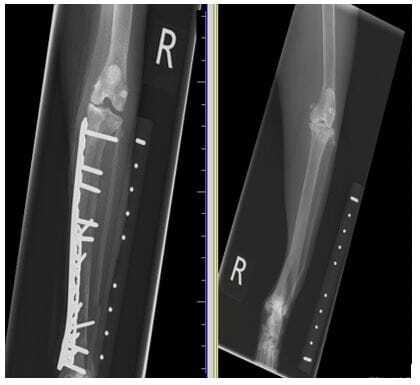 FIGURE (3) This fracture was repaired under compression, as you can see the two ends of the fracture are accurately aligned