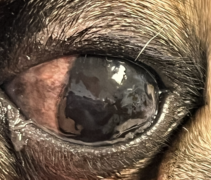 Ocular surface diseases in dogs are frequently encountered in routine ophthalmology consultations. These include ulcerative keratitis, pigmentary keratitis and keratoconjunctivitis sicca, and are typically seen in brachycephalic dogs. The underlying cause is their abnormal conformation: large palpebral fissures (macroblepharon), prominent globes and corneal exposure due to shallow orbits, medial lower eyelid/canthal entropion and associated trichiasis, as well as caruncular trichiasis (Figure 1). Together, these conditions are also known as brachycephalic ocular syndrome (BOS) (Nutbrown-Hughes, 2021; Costa et al., 2021; Palmer et al., 2021; Sebbag and Sanchez, 2023). Although medical management can alleviate the clinical signs associated with this anatomical abnormality, it is usually insufficient, leading to the progression and worsening of ocular surface diseases. Medial canthoplasty is a surgical technique that corrects the anatomical abnormalities present in brachycephalic dogs, significantly improving overall ocular surface health.