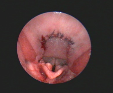 Additional diagnostic tests that can give information beyond the direct preoperative visual observation of the nostrils, soft palate (Figure 1), tonsils, laryngeal saccules (Figure 2) and laryngeal cartilages can include thoracic radiographs, computed tomography (CT) and pharyngoscopy/rhinoscopy. Findings can include aberrant nasal turbinates, aspiration pneumonia, hiatal hernia (and other oesophageal conditions), nasopharyngeal mucocoele and tracheal/bronchial disease.