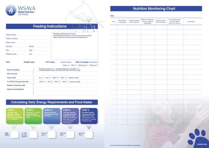 As well as selecting an appropriate diet, it is crucial to ensure the patient consumes enough and to monitor their intake. The WSAVA Global Nutrition Toolkit provides some excellent monitoring tools and checklists which are free to download (Figure 2).