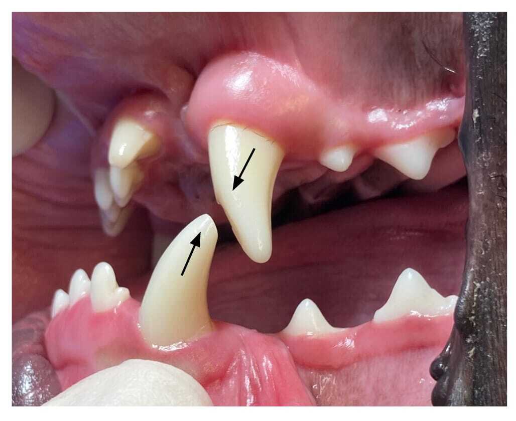An argument that is often used by owners and breeders is that malocclusion that affects deciduous dentition is temporary and “they will grow out of it” when the deciduous teeth exfoliate. Even though it is possible the permanent dentition could erupt into comfortable positions, a decision to not intervene is a decision that it is acceptable for these juveniles to be in discomfort or pain until this happens!
