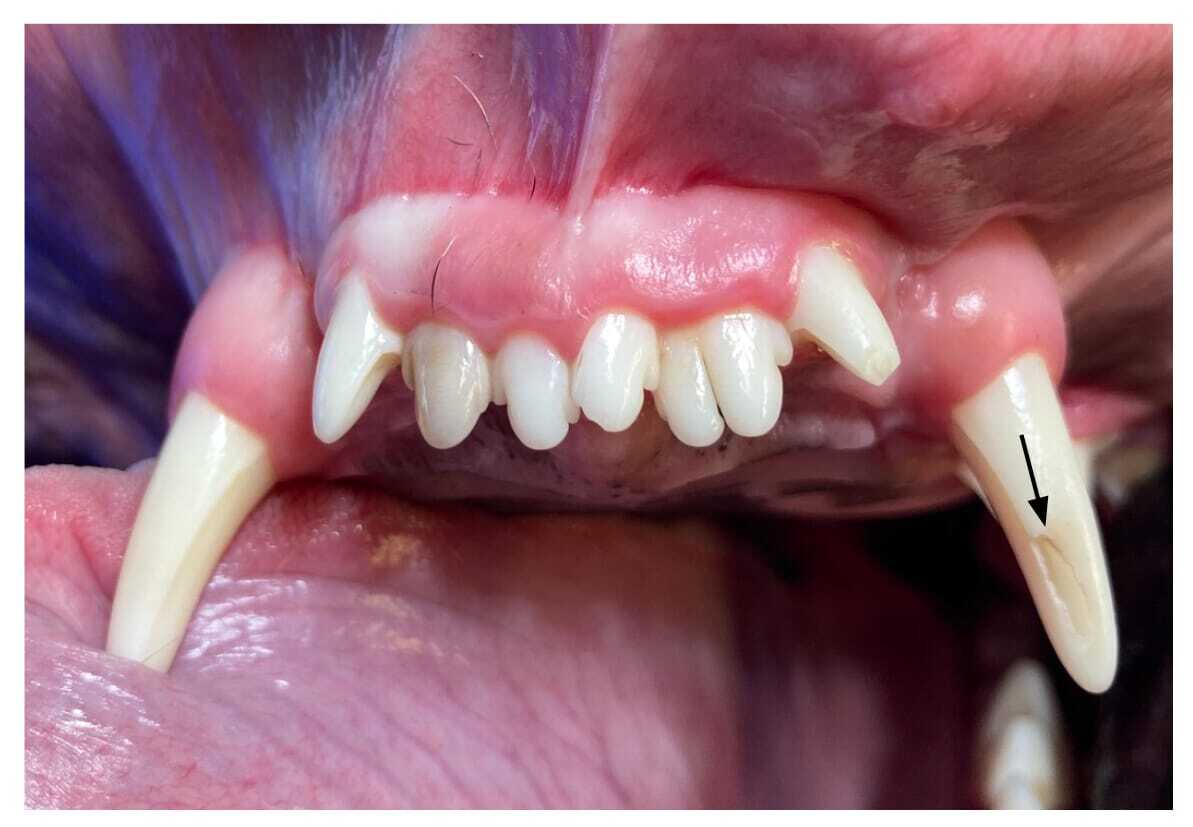 Rostroversion/mesioversion (so called “lance canines”) of the canine teeth are more often encountered in specific breeds (eg Shetland Sheepdogs and Whippets) and therefore probably have a genetic association.