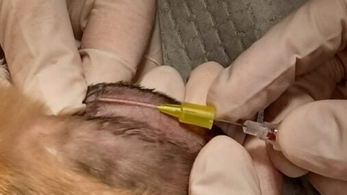 Placement of an intravenous cannula also facilitates the administration of a lidocaine constant rate infusion (CRI). Use of lidocaine CRI has been shown to improve survival rates in rabbits treated for gastrointestinal obstruction (Huckins et al., 2024). Fluid therapy should be instigated using crystalloids; as the patient is likely hypovolaemic, a fluid rate of 10ml/kg/hour of warmed fluids should be used under general anaesthesia.