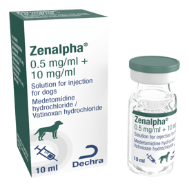 Zenalpha contains the active ingredients 0.5 mg/ml medetomidine hydrochloride and 10mg/ml vatinoxan hydrochloride.