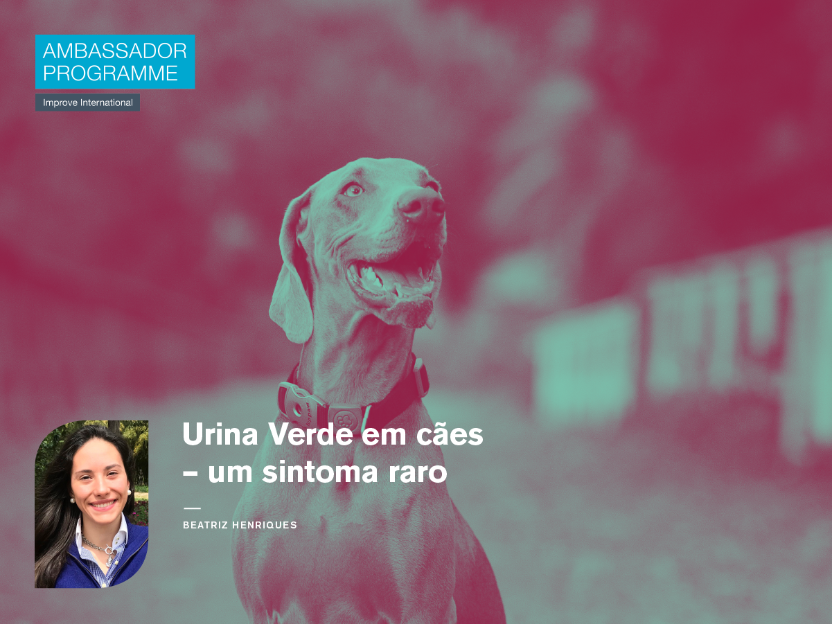 Este é um caso de uma cadela que se apresentou à consulta com história de dor no pescoço e tetraparesia. A mesma realizou uma ressonância magnética que revelou uma massa extradural ao nível da vértebra C3, cuja principal suspeita foi de um abcesso espinhal. Mais tarde, o paciente foi sujeito a uma intervenção cirúrgica para remoção da massa. Após a cirurgia, quando o animal se encontrava nos cuidados intensivos, foi notado que a bolsa de urina se encontrava cheia de urina de coloração verde sendo que a tira de urina não apresentava nenhuma anormalidade.
