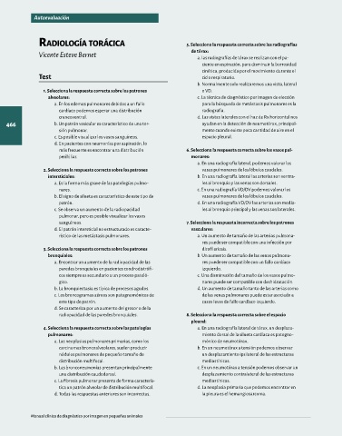 más frecuente es encontrar una distribución 6. Selecciona la respuesta correcta sobre los vasos pul- radiopacidad y pérdida de visualización de los vasos