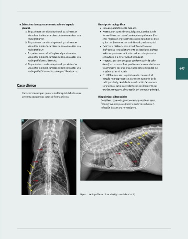 craneoventral. d. Las vistas laterales con el haz de Rx horizontal nos d. En pacientes con efusión pleural, para intentar óseo (flechas amarillas) posiblemente secundario a un