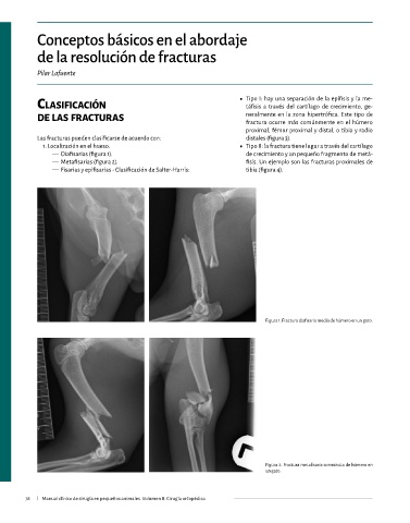 ClasifiCaCión ʚ Tipo I: hay una separación de la epífisis y la me- fisis. También se trata de una fractura articular. culación. Estas fracturas deben ser reducidas de for-