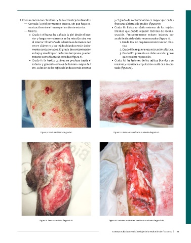 Figura 7. Fractura oblicua larga de la diáfisis distal de Figura 8. Fractura conminuta no reducible en la diáfisis femoral de Figura 11. Fractura abierta de grado III. Figura 12. Lesiones masivas en una fractura abierta de grado IV.