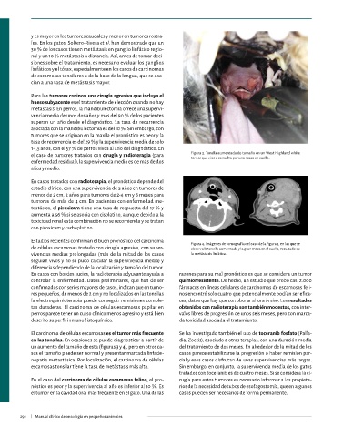 nopatía metastásica. Por localización, el carcinoma de células cial y esos casos disfrutan de unas supervivencias más largas. de células fusiformes, con una ratio núcleo/citoplasma mode- Tamaño del tumor Tiempo medio de supervivencia