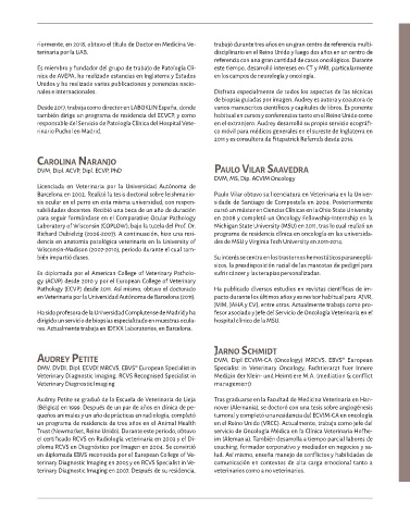 revistas científicas de impacto. En la actualidad es miembro en Oncology nica de AVEPA, ha realizado estancias en Inglaterra y Estados en los campos de neurología y oncología.